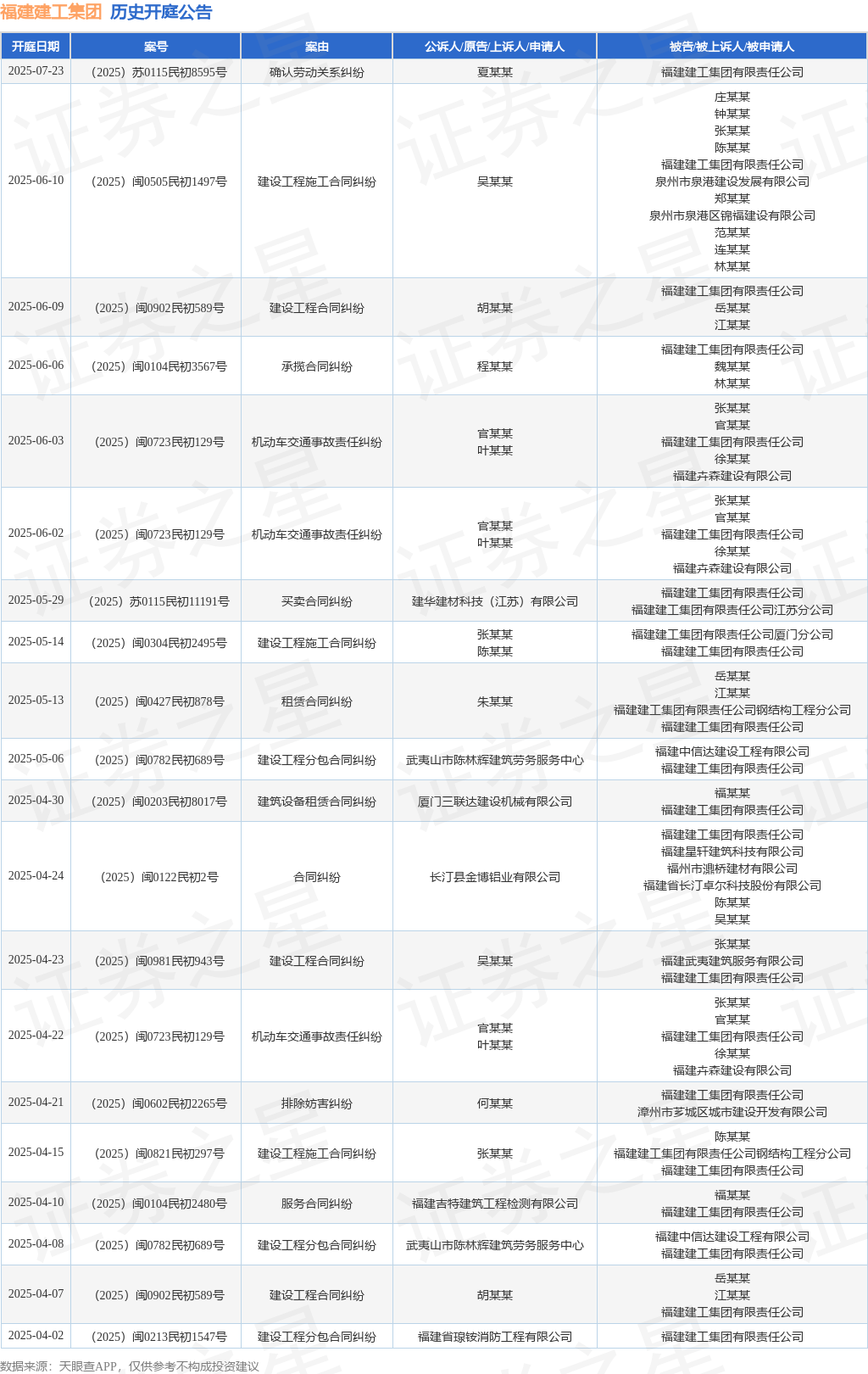 本站消息,根据天眼查APP显示,近日公布了一则福建建工集团有限责任公司作为被告/被上诉人的开庭公告,详细内容如下: